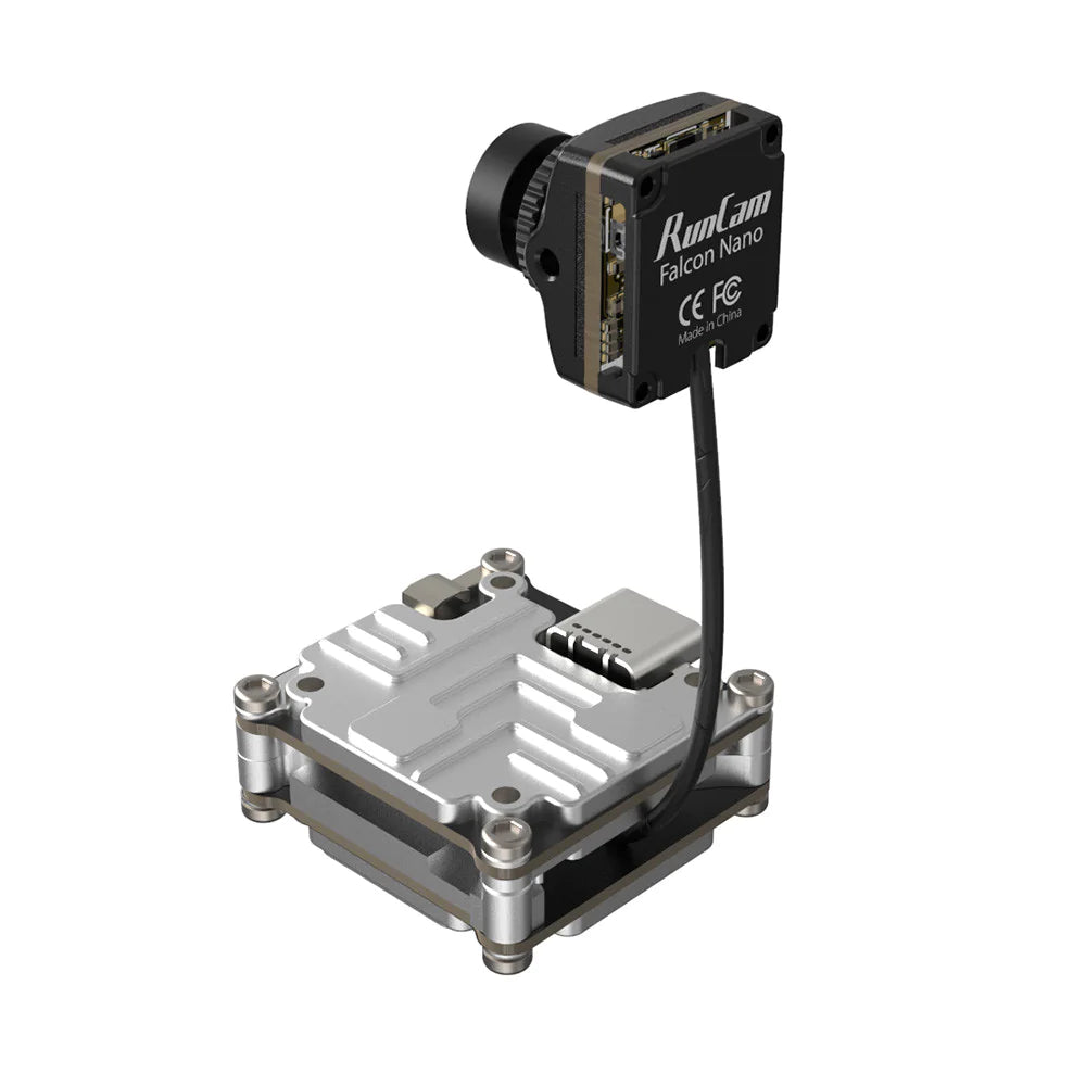 The RunCam Link Falcon Nano Kit is a DJI Digital FPV System featuring a camera with a 4:3 sensor and the smaller "Vista" air unit. The nano-sized camera measures just 16x14x17mm and weighs 4g. Perfect for smaller-sized builds or anyone wanting to save space or weight.